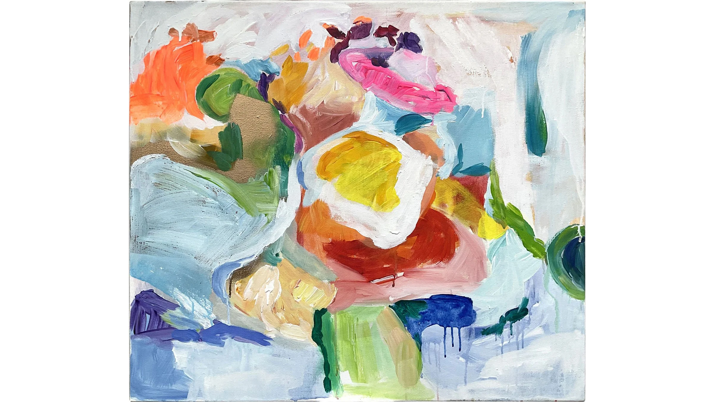 Pole změny, akryl na plátně, 80 × 70 cm, 2025Barva se v obraze koncentruje do hutného středu, kde se vrstvy překrývají a zahušťují. Malba pracuje s pocitem nasycení, momentem, kdy už není kam přidávat, a energie se začne obracet dovnitř.21 000 Kč