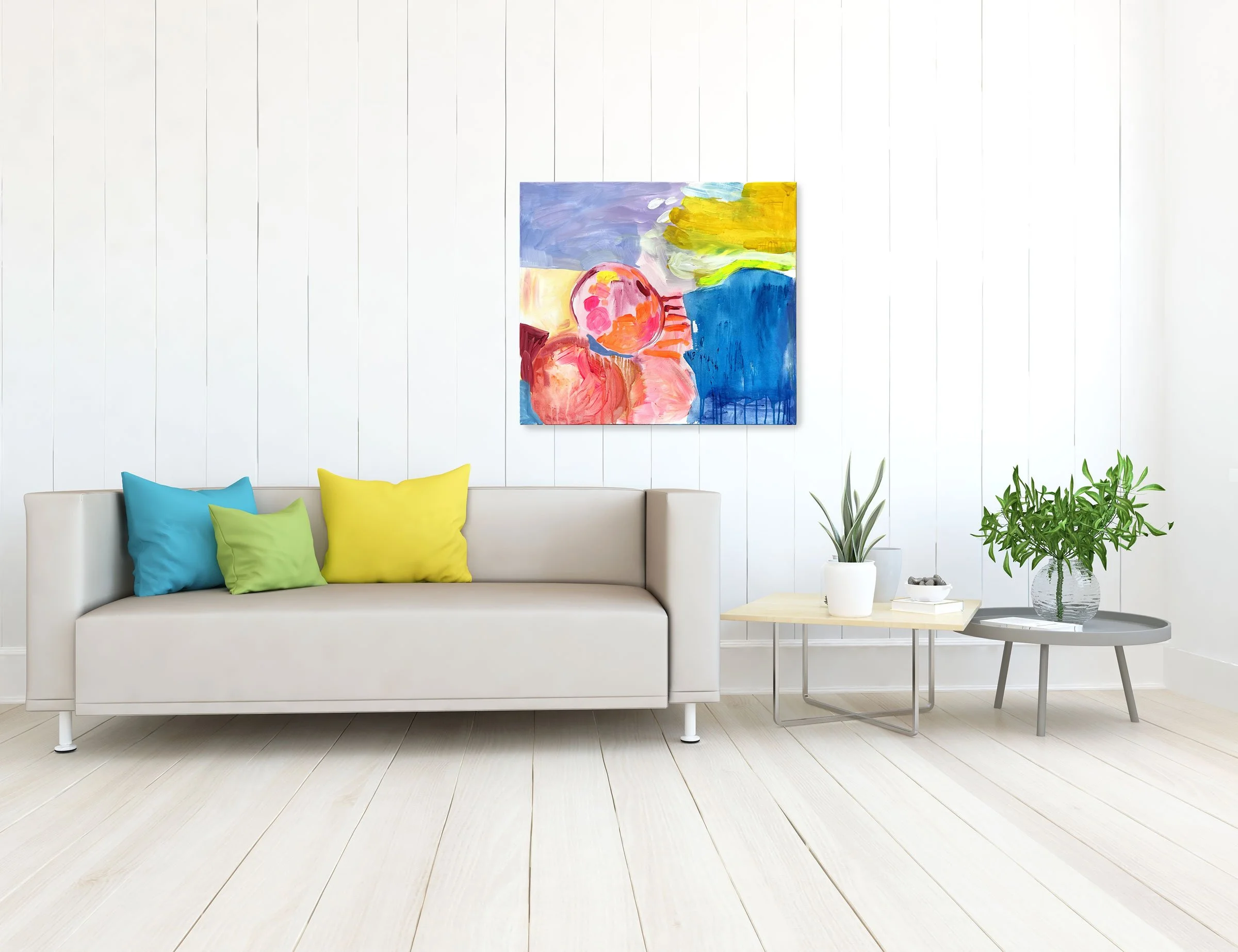 Jeden z barevných obrazů, kde původní návrh neměl smysl. Barva si protlačila cestu sama. Obraz se soustřeďuje kolem středu, který drží celek pohromadě. Barevné vrstvy na něj narážejí a zároveň z něj vycházejí.